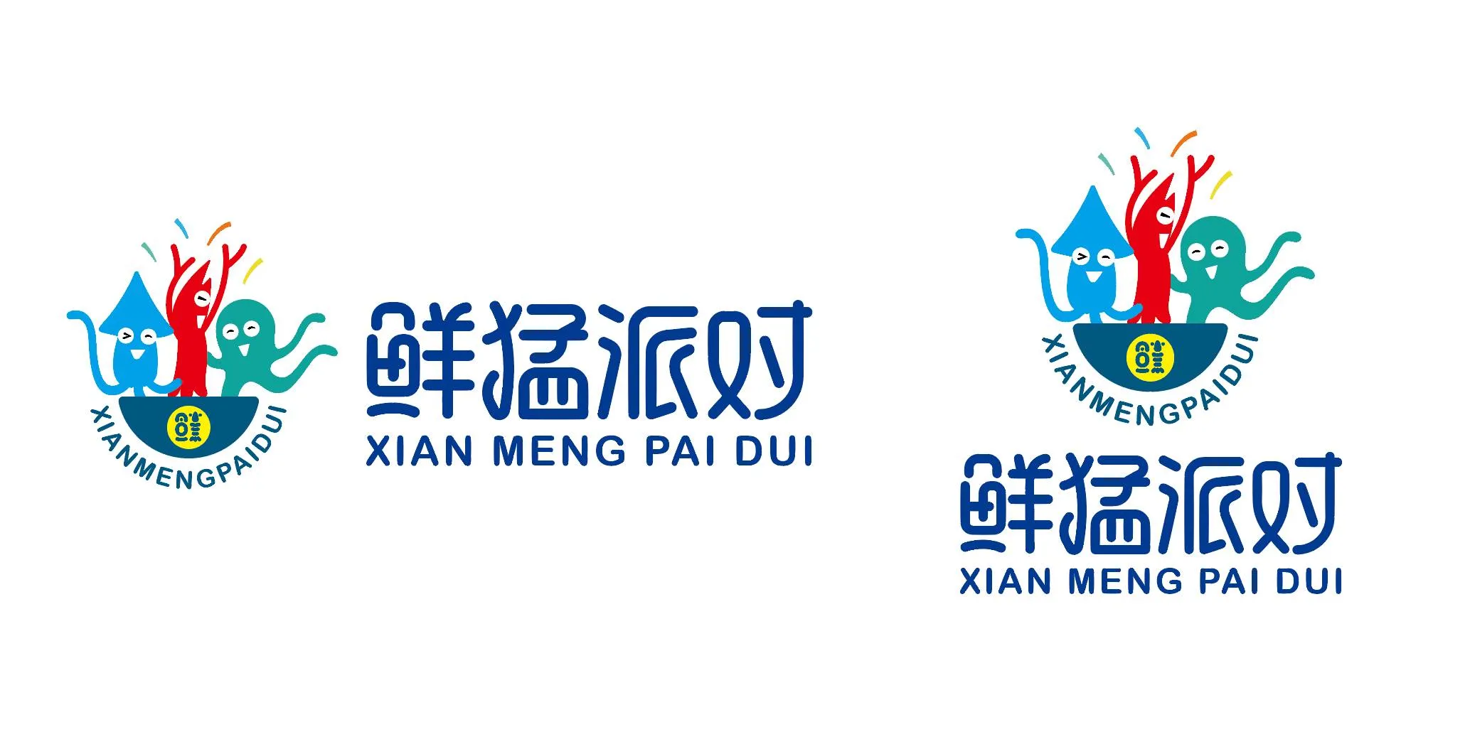 LOGO设计成海鲜在碗里狂欢的形象,配合辅助图形将热闹、快乐的派对氛围表现出来。标志的缤纷色彩,将品牌的轻松愉快的理念文化进行强化。