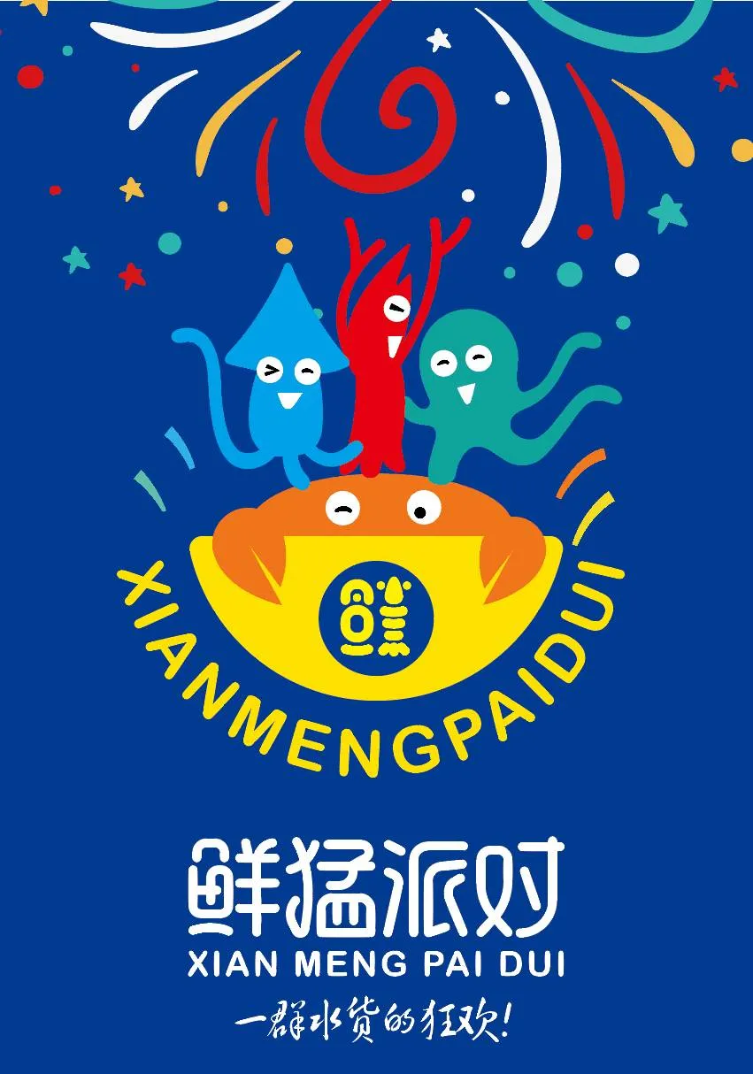 所以我们为项目取名为 : 鲜猛派对。以“一群狂欢的海鲜”作为设计元素,向目标受众传达品牌“新鲜、青春、快速、快乐”品牌理念。