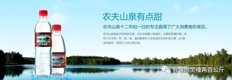 4.产品定位:农夫山泉是健康、安全的饮用水,有点甜。