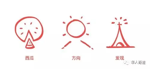 找到方向然后去探索和实验,用图形表达出来。设计师选用了西瓜横切面为基础进行设计,中间切了一块西瓜后正好是一个箭头形状寓意旅行中的方向,西瓜子则代表发现了美好事物的光芒的形状。
