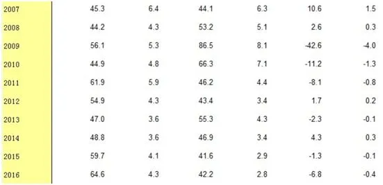 其中2009年这么高是因为净出口对经济增长的拉动贡献率为负,之后总体呈现不断下滑的态势,2016年投资对经济增长拉动下降到42.2%,到2017年投资对经济增长拉动只有32.1%了。