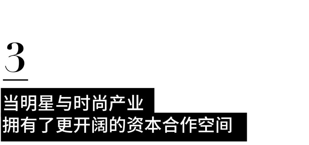 由此,时尚产业面向明星的资本合作模式便愈发丰富。一方面,当明星拥有了公司股东身份,投资视角会推动他们更主动支持公司增长计划,甚至能在一定程度上规避掉“代言人风波”;另一方面,明星投资人带来了多重价值--如最基础的流量和资金、额外的营销宣传成本、由他们所塑造的消费者期待与愿望 -- 都能使时尚企业的资本组合实现价值最大化,称得上是一举多得。