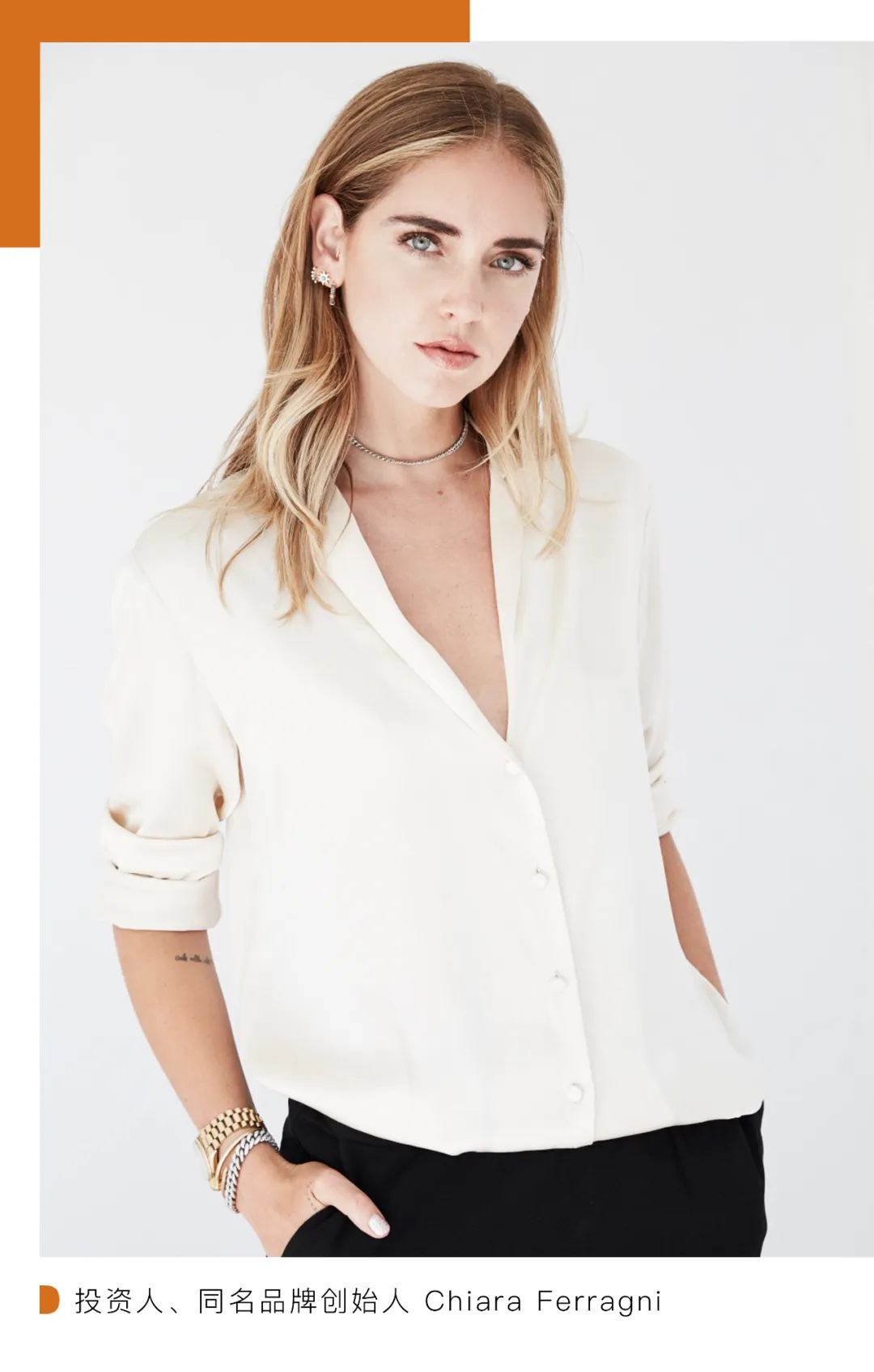 其中跨界时尚界和投资界尤为成功的 Chiara Ferragni,或许就是最为人熟知的典型案例。在去年 4 月进入 Tod’s 董事会两个月后,Chiara Ferragni 收购了她在 2009 年创立的 Tbs Crew Srl 公司 45% 股份实现 100% 控股,除了运营线上杂志《The Blonde Salad》之外,Tbs Crew Srl 也经营着人才代理和数字营销战略顾问业务。