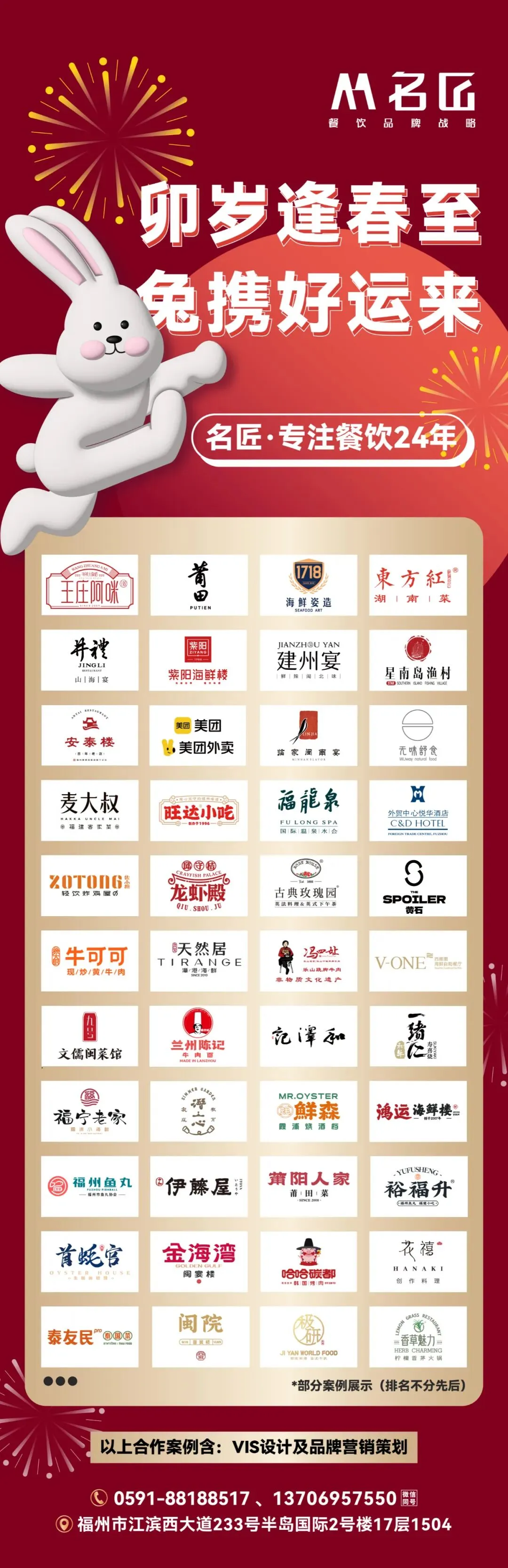 福州名匠广告有限公司创立于2000年,是一家具有24年品牌营销服务的资深广告公司。专注于餐饮行业,以品牌定位、商业策略、品牌升级、品牌设计、营销推广、企业策划顾问、新媒体运营、PR 活动策划等不同专长领域里,长期为餐饮客户提供定制化解决方案。