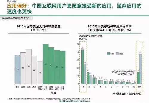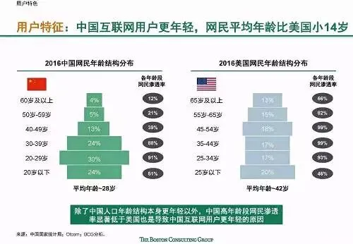 但中国互联网市场结构与美国相比又差异显著,电子商务和互联网金融占比明显较高,互联网用户更年轻、更草根、更移动以及更“喜新厌旧”。