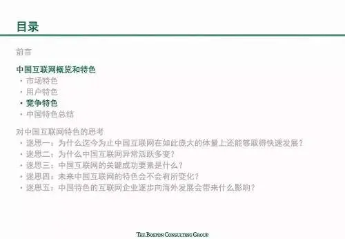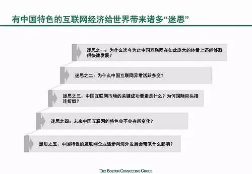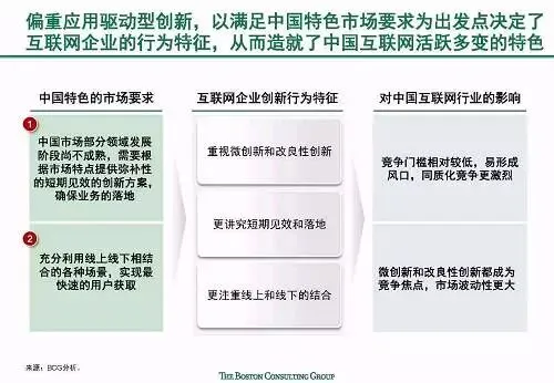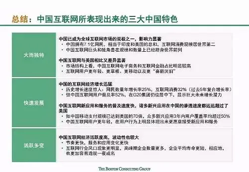 世界对中国互联网充满了无限的好奇:中国互联网如何在短时间内取得飞跃?它呈现出哪些独一无二的中国特色?这些特色从何而来,未来又将何处去?报告指出,中国互联网经济整体呈现出三大显著中国特色: