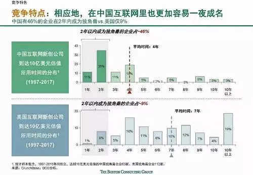 活跃多变:中国互联网经济活跃度高,波动也较大。服务和应用变化节奏快,互联网行业风口现象更明显,高峰期企业数量更多,企业平均寿命更短,相应地,也更加容易造就一夜成名。