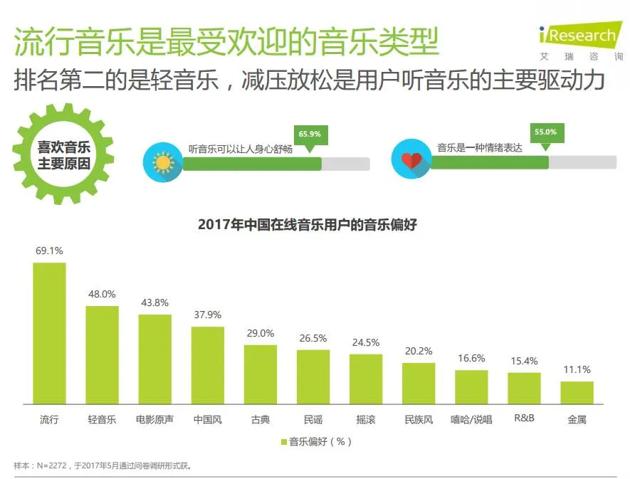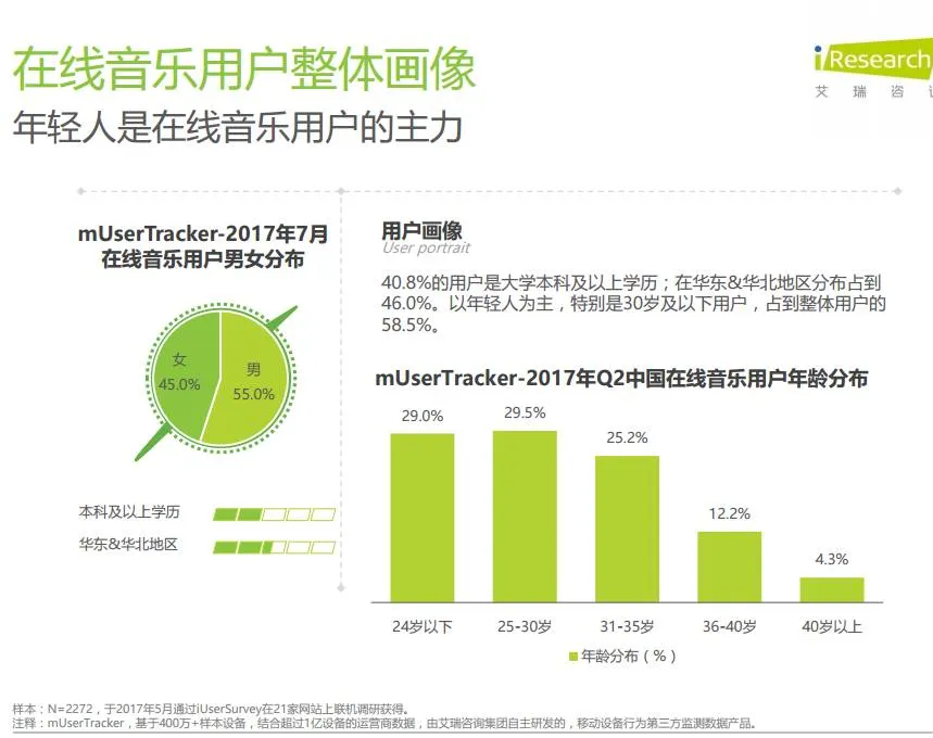 音乐作为互联网DNA级的应用,一直是网络流量的主要贡献者之一。在消费升级的大背景下,音乐产业不仅迎来了飞跃发展的契机,而且正成为文化娱乐行业的新引擎。在线音乐的用户几乎无处不在,并且在持续不断增加。音乐产业的竞争和机遇远未结束,暗波和洪流也一直存在。艾瑞咨询近日发布“2017中国在线音乐用户洞察报告”,而相信你作为一名用户的画像也定在其中。