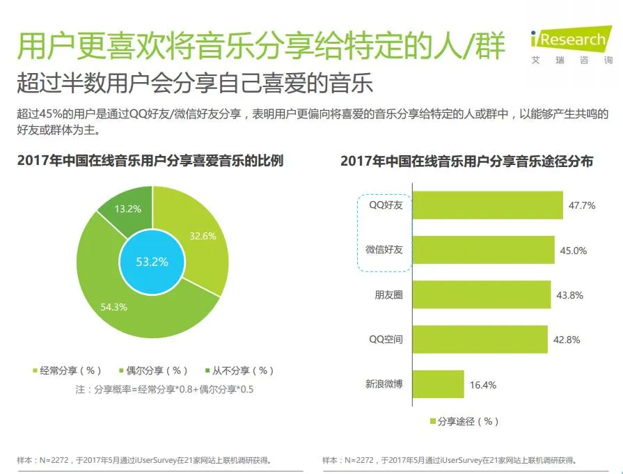 在线音乐用户偏向年轻化,华东华北地区分布略多;最喜欢的音乐类型是流行音 乐、轻音乐和电影原声,海外音乐中,用户偏爱欧美明星/影视剧;并且用户乐于转发音乐。