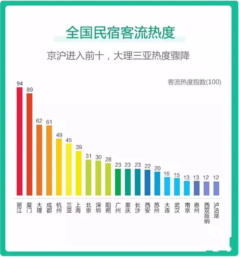 云南大理的热度骤降,而美丽的阳朔也惨淡留在第十位。