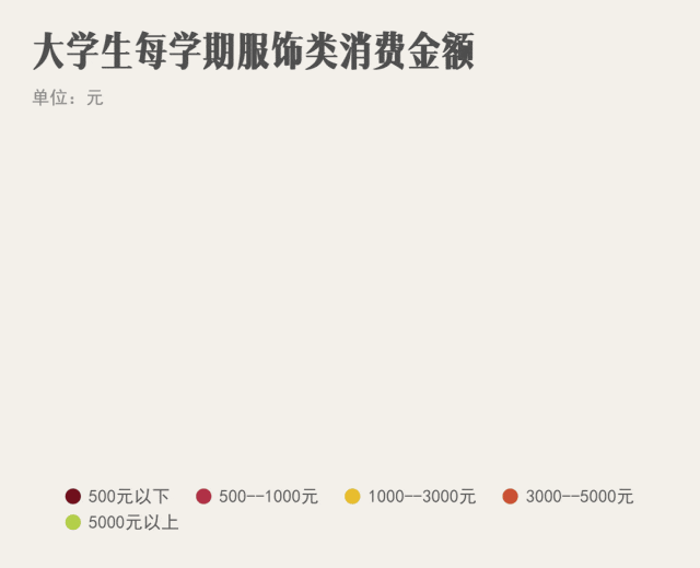 数据资料显示,大学生每学期服饰类消费金额,消费金额在500元以下的占比28.35%。消费金额在500--1000元,占比37.5%。1000元--3000元,占比25.93%。支出在3000元--5000元之间,占比7.75%每学期消费支出在5000元以上占比1%。