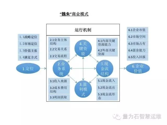 第一种,“魏朱”商业模式(见下图),这是由北大清华两位教授根据多年的实践提炼出来的一套行之有效的商业工具与方法,已经得到很多企业家的认同,笔者亲眼见证了一位企业家(同时也是北大EMBA学员)将此方法运用在连锁模式与“云”店面上,提升效果逐步得到实现。