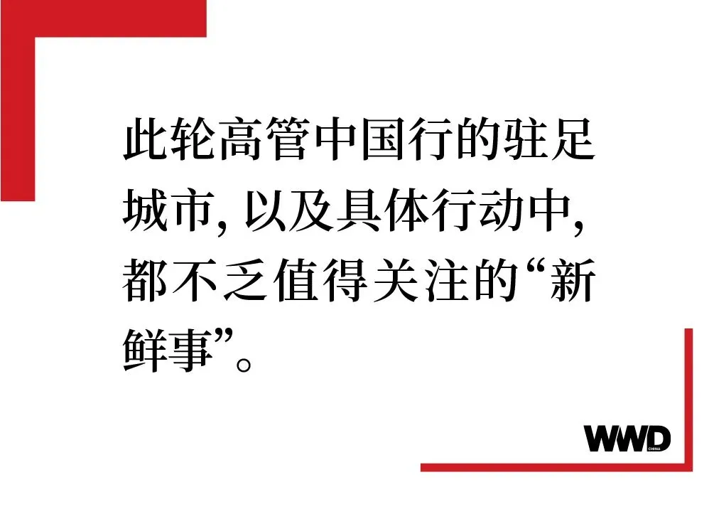 “中国行”的背后,无疑是与中国消费者建立更紧密的联系,更及时捕捉中国市场的机会。但细看高管行踪,每一个目的地,都已经事关中国奢侈品消费市场后续增长的动能。