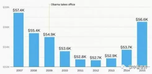 同时,目前美国年均家庭收入为5.6516万美元,不及金融危机前的水平。