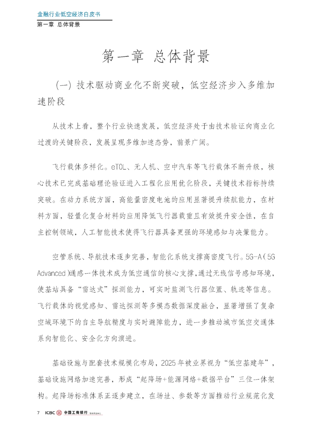 在全球化与科技革命的双重驱动下,低空经济作为战略性新兴产业,正以前所未有的速度重塑传统产业格局,开启全新的经济形态。《2025年金融行业低空经济白皮书》由中国工商银行软件开发中心联合多家权威机构精心编制,从金融视角深入剖析了低空经济的技术演进、产业现状、应用场景及未来趋势。本白皮书不仅揭示了低空经济作为万亿级赛道的巨大潜力,还详细探讨了金融行业如何通过创新服务模式,深度融合并推动低空经济的高质量发展,为金融机构布局这一新兴市场提供了宝贵的战略指南。