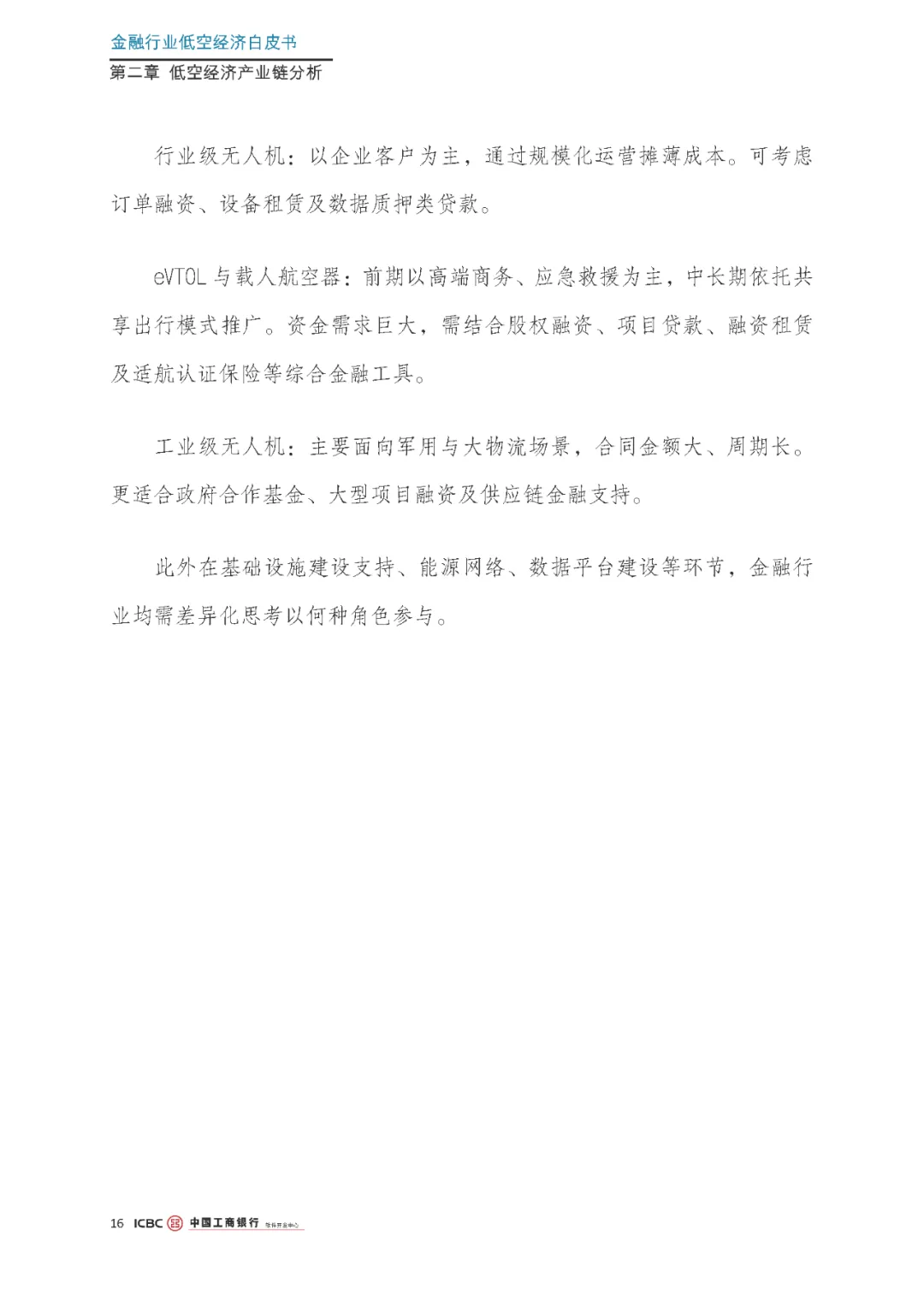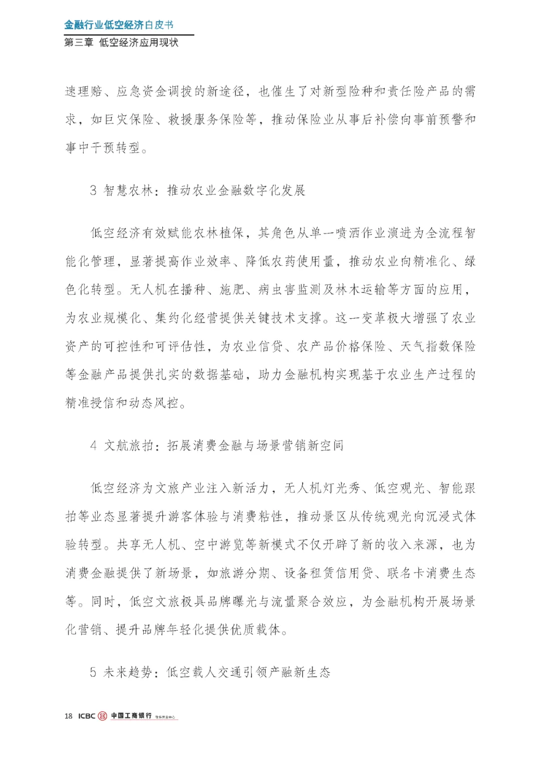:金融机构通过战略合作、信贷支持、场景共建与产融协同等多种方式深度参与低空经济生态构建。针对不同应用场景,金融机构探索差异化的服务模式,构建“场景+金融”生态体系,为低空经济提供全方位、多层次的金融支持。