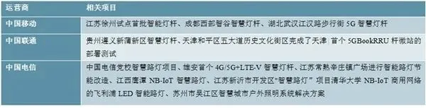 国内三大运营商独立或与华为等厂商合作,布局智慧灯杆建设,5G智慧灯杆、NB-IoT智慧路灯项目已落地。