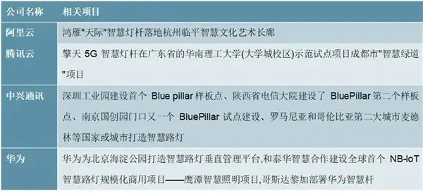 阿里、腾讯、华为、中兴通讯等互联网、通信巨头也纷纷入局,结合自身技术和平台优势,已在国内外均有智慧灯杆项目落地。