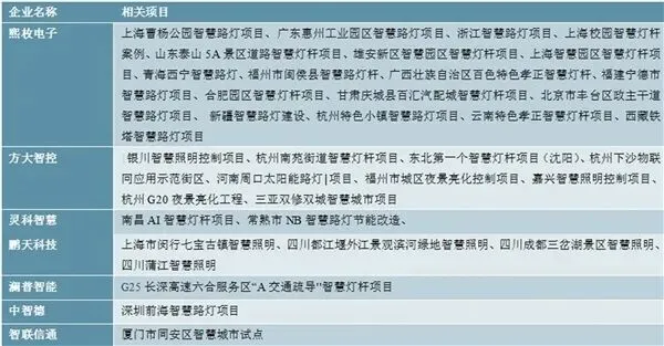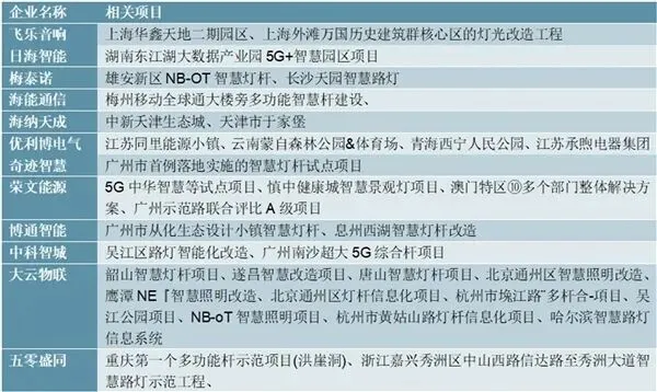 图表:提供智慧灯杆成品的跨界厂商及相关项目