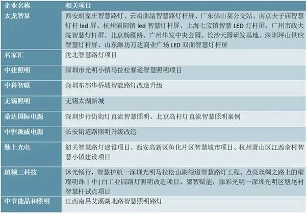 图表:提供智慧灯杆成品的传统照明杆塔企业及相关项目-1