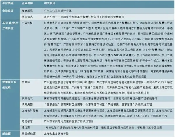 图表:供应链分类下已布局智慧灯杆供应商名单