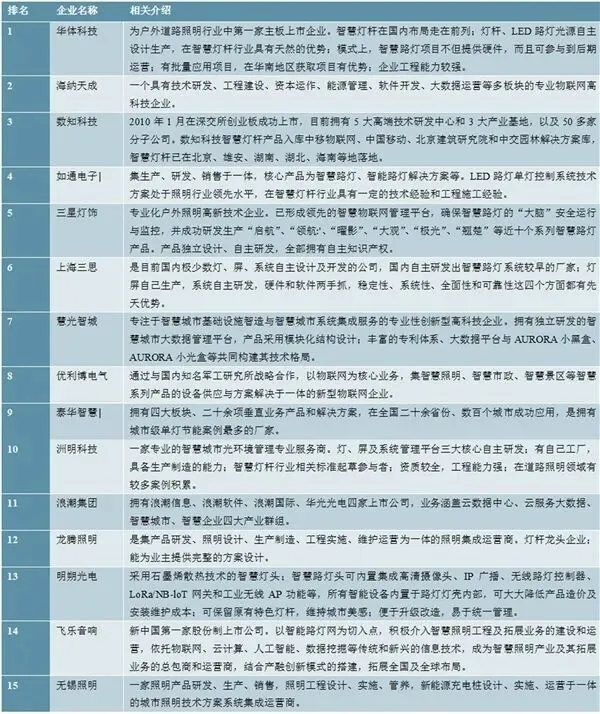 图表:2018年中国智慧灯杆行业15强企业及介绍