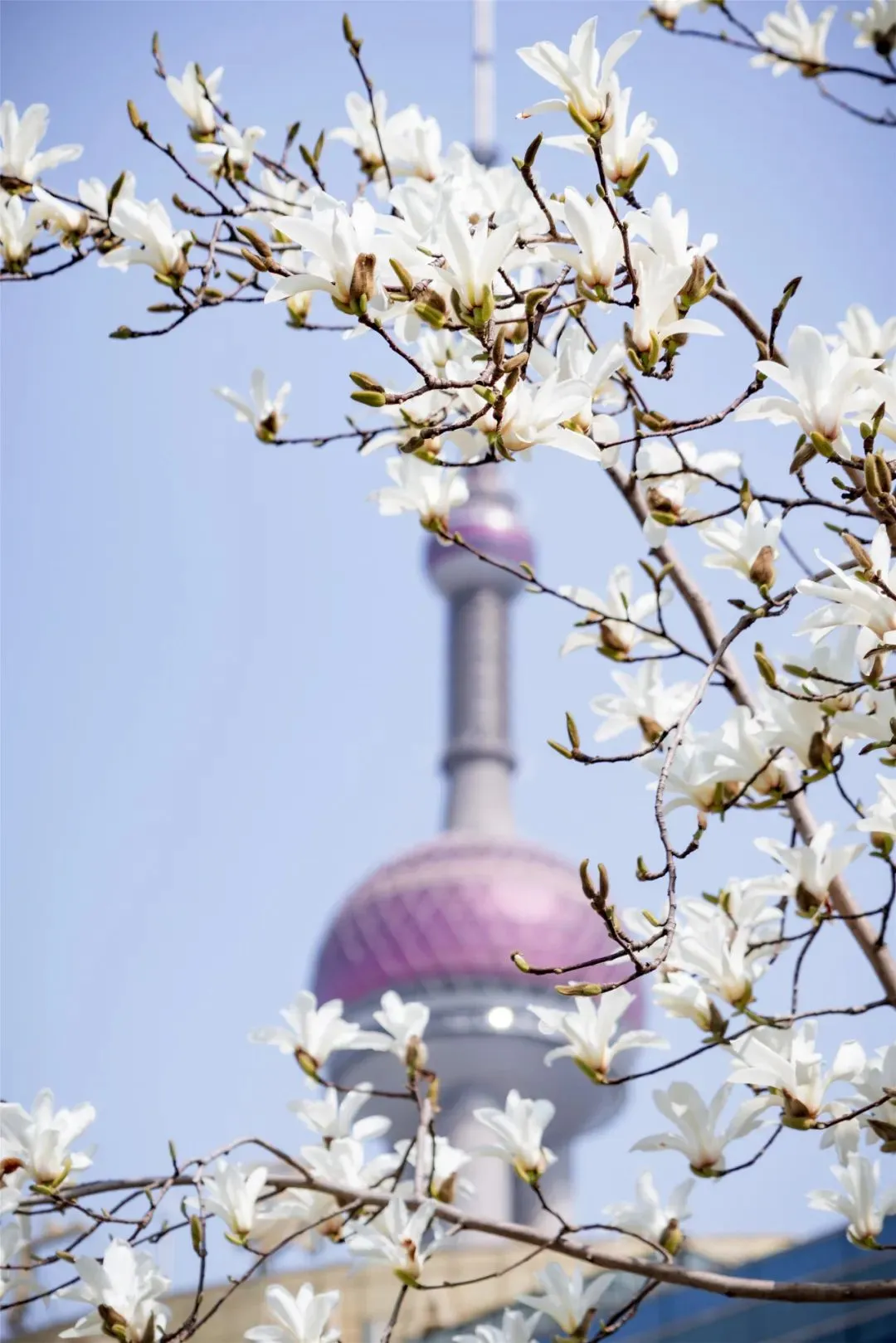 上海市花白玉兰与城市地标东方明珠