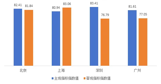 第二,从指标结构看,均衡与协调是“上海旅游”品牌发展的基本态势。首先,指标评价体系的48个指标由25个客观指标与23个主观指标共同构成,指标体系的结构比较恰当。其次,主客观指标的综合值比较接近,说明“上海旅游”品牌在主客观两方面的建设与发展态势比较协调。再次,五个维度的分类指标数值都位于“好”的层次,有力说明“上海旅游”品牌在各个方面发展比较均衡,总体结构比较稳定。最后,48个指标的得分值分布比较合理,表明“上海旅游”品牌发展的基础比较扎实,形成厚实的品牌发展平台。