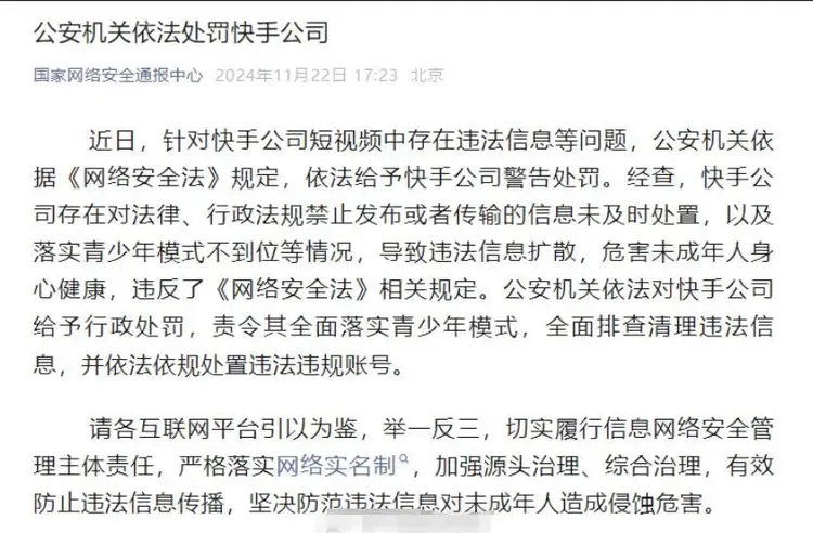 某教育博主发起的调查显示,22日晚至23日凌晨,仅3小时内就有超2000条针对快手擦边直播的举报记录,举报成功率不足10%。有用户截图爆料,部分直播间甚至标注“举报无效”,此事引发全网巨大关注,很多网友表示这是快手在“作死”。在2024年11月被国家网络安全中心以短视频存在违法信息等问题处罚过的快手,去年已经被责令全面落实青少年模式,全面排查清理违法信息,并依法依规处置违法违规账号。一年后快手又出现大问题,着实让人意外。