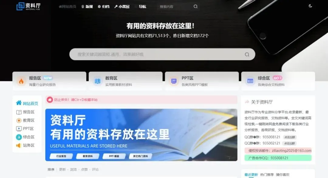 资料厅(www.ziliaoting.com)作为专业资料分享平台,收录最新、最全行业研究报告、文档资料等。全站关键词高级检索,免费获取阅读下载各类行业分析报告、券商研报、文档资料等。