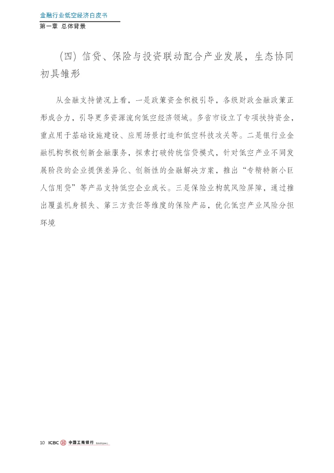 :金融机构通过战略合作、信贷支持、场景共建、风险保障等多种方式,深度参与低空经济生态构建。针对不同应用场景,探索差异化的金融服务模式,构建“场景+金融”生态体系,支持低空经济各环节的发展需求。