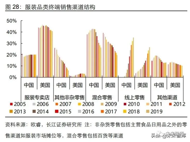 我国以服装为线上零售主要品类,加强了淘宝旺旺带来的优势。我国服装品牌集中度相 对较低,渠道结构相对分散,推动服装品类线上零售快速增长,以美国为例,2010 年 时美国服装企业 CR10 为 22%,远高于国内的 8%,从渠道结构来看,2005 年时服装专卖店渠道比例为 21%显著低于美国 44%的水平,高达 26%的服装通过地摊、街边小 店等渠道销售,低成本线上销售渠道的出现迅速吸引了大量中小型经营服装品类的商家 入驻,其中淘宝凭借旺旺的推出获得了服装商家的青睐。