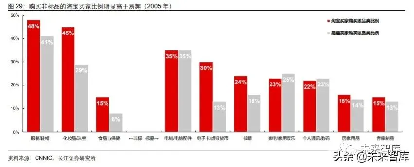 综上,淘宝当时面临的问题可概括为:非标品类品牌力较弱,使得服装等主要品类的商 家竞争以价格战的形式开展情况较多,进而造成品牌商家入驻难度较大、用户不易获取 高质量商品等摩擦成本出现。在当时国内品牌经营和品牌消费快速增长的趋势下,阿里 巴巴开始打造区分于淘宝的 B2C 平台天猫,专门推动品牌商家入驻,淘宝平台则继续 坚持零佣金策略,为中小商家提供服务,这一过程使淘宝积累了大量的优秀长尾商品, 为用户提供多元化选择。