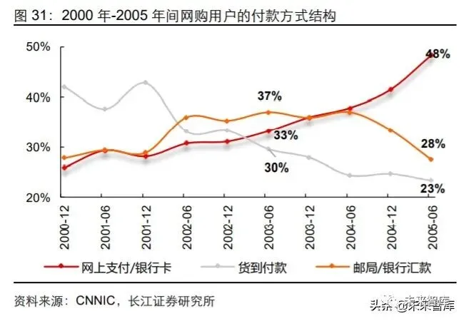 早期线上购物行业的痛点在于信息不对称易导致诚信问题,从而抬高摩擦成本。CNNIC 的调查显示,2004 年有 42%的网购用户认为网购过程中存在的最大问题在于商品的质 量、售后服务及商家信用问题,34%的用户认为问题在于交易安全性难以得到保障。其 背后的原因在于,线上交易场景不同于线下,仅靠静态图文形式为主的展示形式易造成 商品信息不能有效传达,信息不对称的情况给予了商家销售以次充好商品的空间;同时, 网上转账交易难以与实物交付同时进行,购前以汇款等方式提前支付存在商家收款后不 发货等诚信问题。综合而言,上述问题抬升了用户线上购物的潜在风险,提高了摩擦成 本,成为了用户进行线上购物的阻碍。
