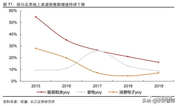 从具体效果上看,小熊电器、韩都衣舍、茵曼等淘品牌在 2006 年-2008 年间开始涌现, 优衣库、李维斯、杰克琼斯等线下品牌也陆续在 2008-2009 年间入驻天猫开设旗舰店。同时,2010 年至 2013 年间价格数据显示,服装、家庭设备用品品类的线上零售价格增 幅超过线下水平,反映出前期低价竞争情况有所缓解。