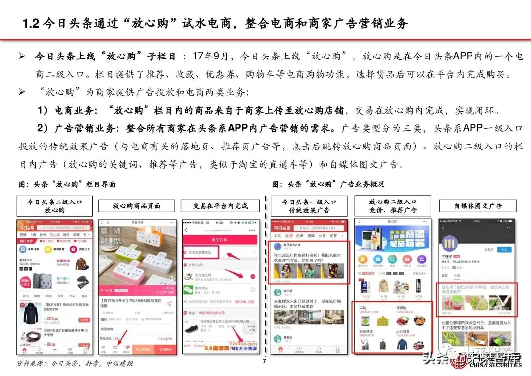 1.2 今日头条通过“放心购”试水电商,整合电商和商家广告营销业务