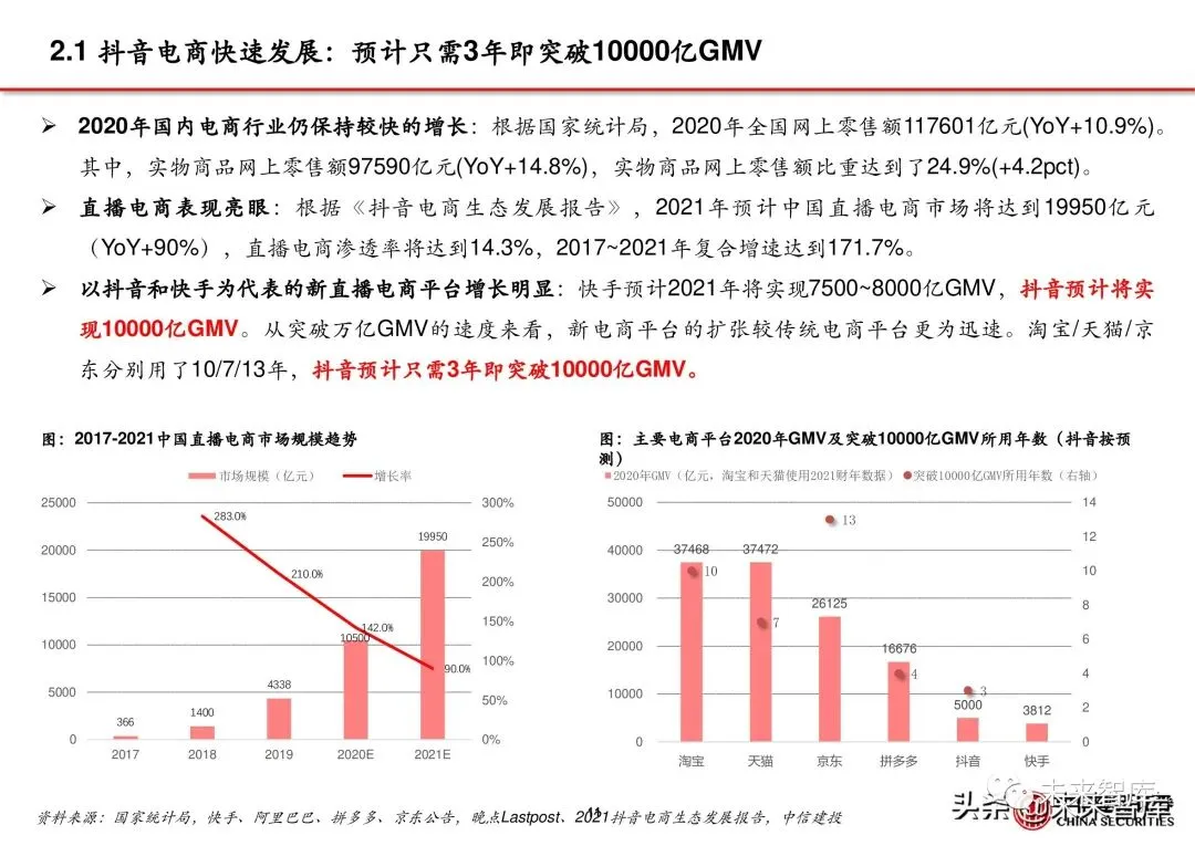2.1 抖音电商快速发展:预计只需3年即突破10000亿GMV