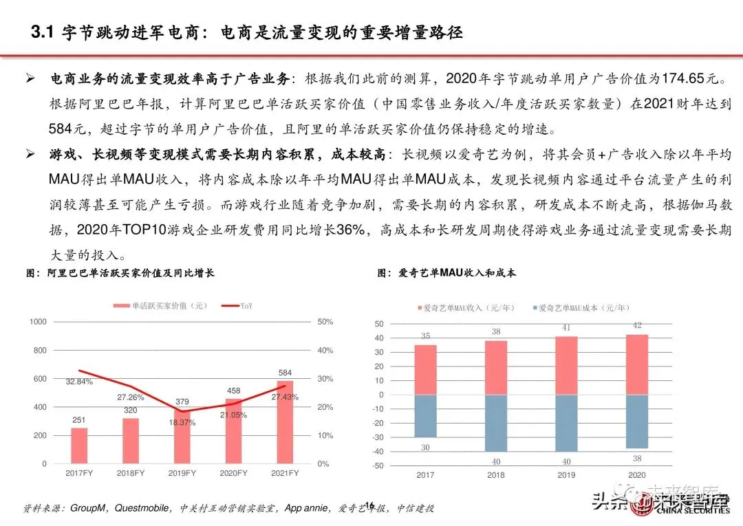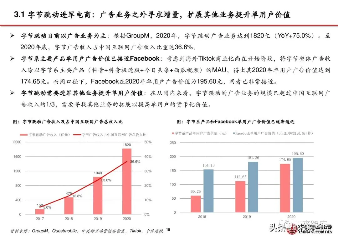 3.1 字节跳动进军电商:广告业务之外寻求增量,扩展其他业务提升单用户价值
