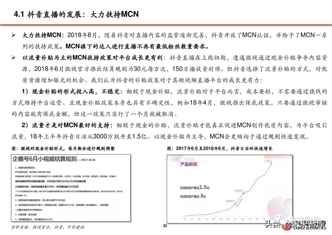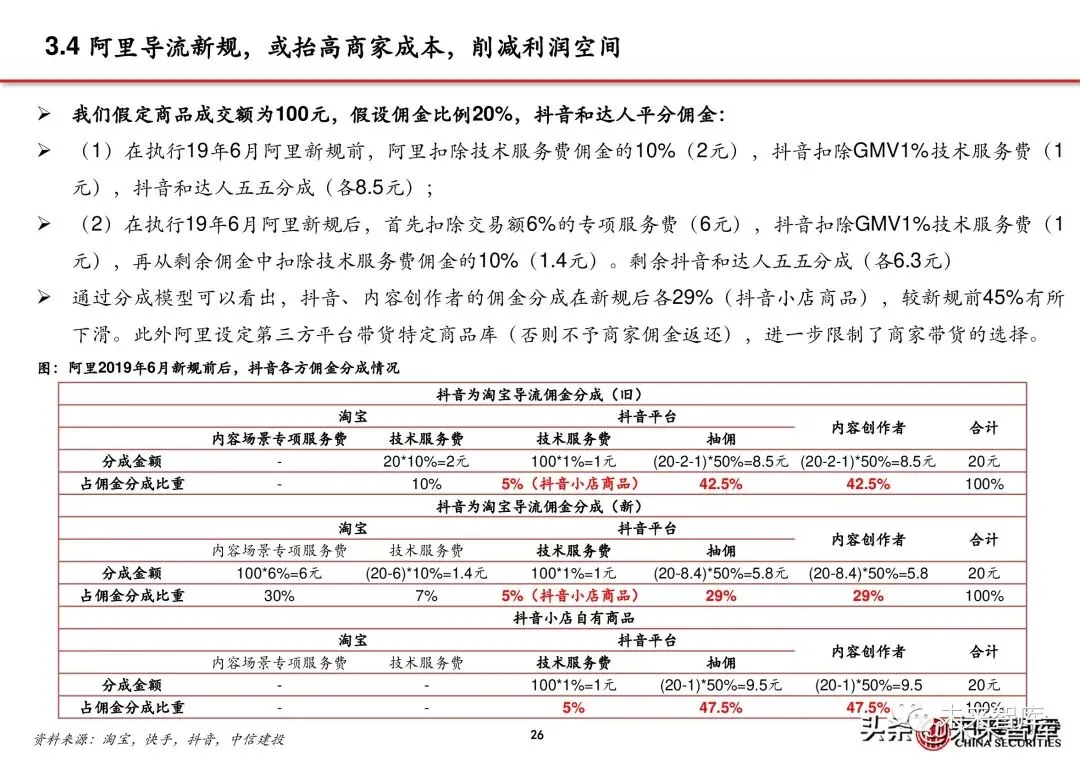 我们认为,这种管控倒逼商户和品牌入驻抖音平台。加紧管控保证了淘宝直播相较于抖音直播有着更好的价格 优势,但实则削减了商家的利润空间,商家难以以低成本享受抖音的流量和淘宝的电商服务。