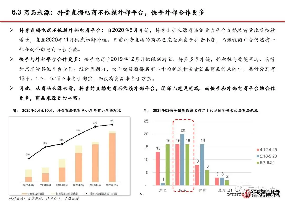 6.3 商品来源:抖音直播电商不依赖外部平台,快手外部合作更多