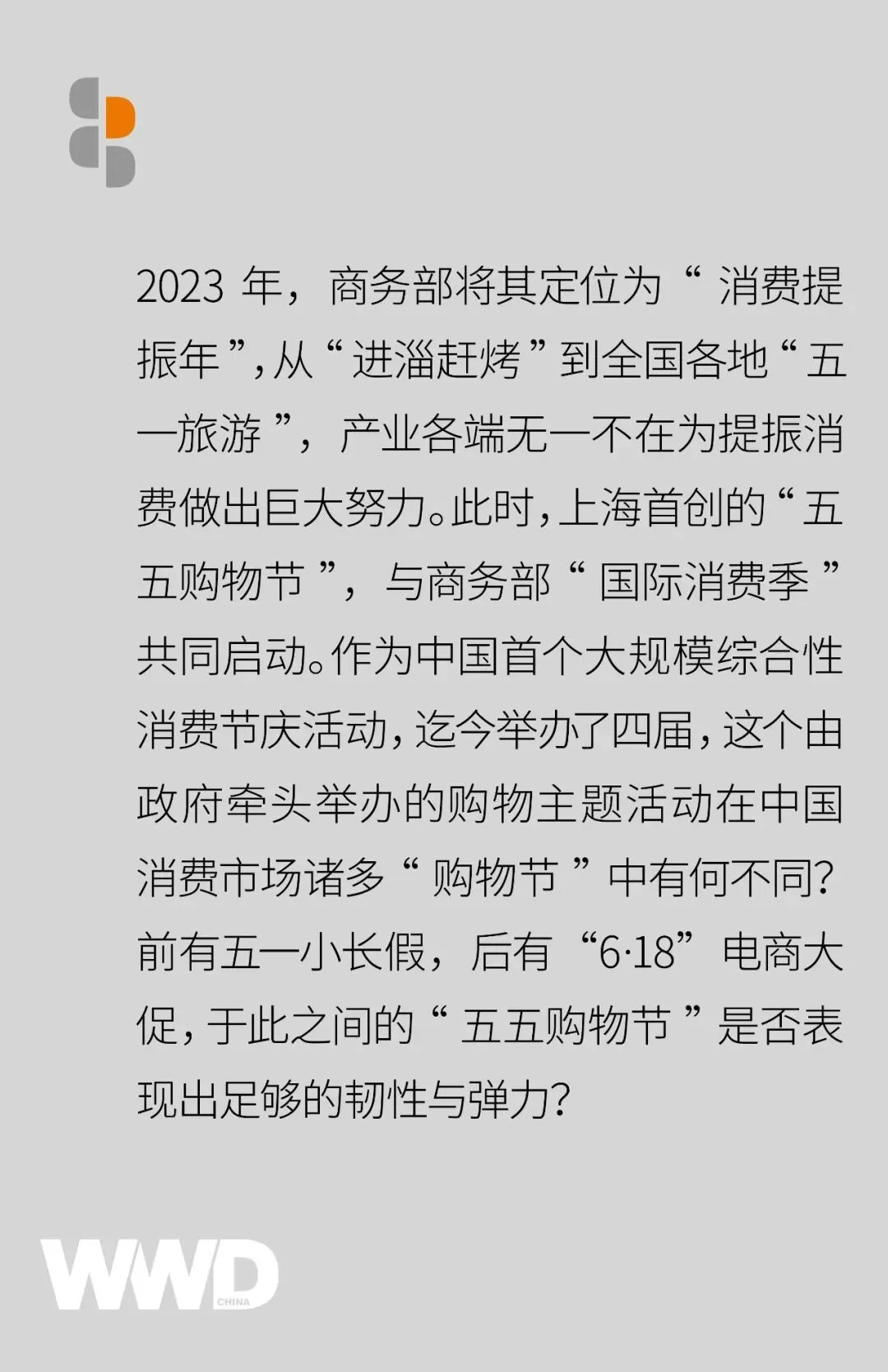 虽然大家的消费意愿高涨,但人们的消费偏好已经向客单价较低的生活必需品所转型。在消费回暖的过程中,生活必需品比可选消费品更具韧性。因此,更需要思考的是——在赶集式消费外,如何培养大众长期的消费习惯?上海五五购物节,以成功的消费实验给予了市场积极的回答。