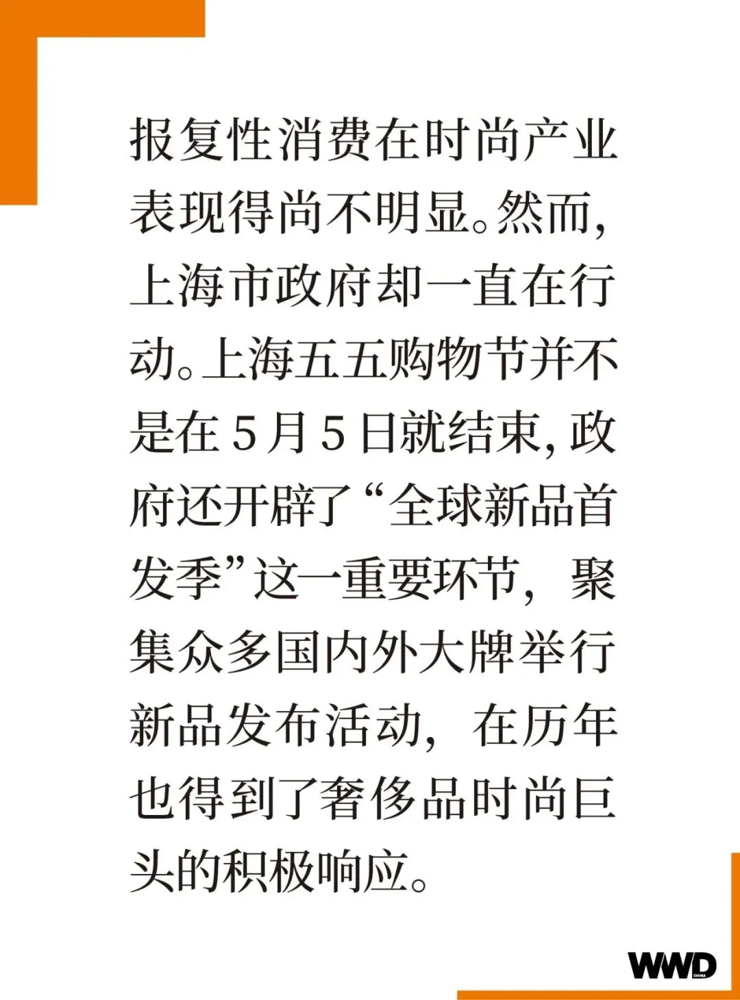 很显然,今年五一假期人均消费同比 2019 年仍有所降低。报复性消费在时尚产业表现得尚不明显。然而,上海市政府却一直在行动。上海五五购物节并不是在 5 月 5 日就结束,政府还开辟了“全球新品首发季”这一重要环节,聚集众多国内外大牌举行新品发布活动,在历年也得到了奢侈品时尚巨头的积极响应。