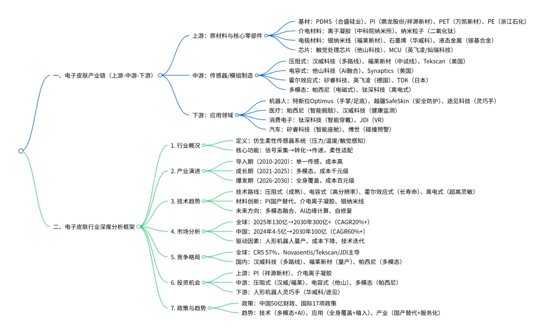 本报告围绕“技术-产业链-市场-投资”四大维度,深度拆解电子皮肤行业,核心聚焦两大目标: