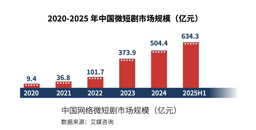 2023年以来,我国短剧产业迎来爆发式增长,逐步成为文化产业的重要组成部分。我国短剧市场规模从2022年的101.7亿元,到2024年超过500亿元,再到2025年上半年达到634.3亿元,增长速度令人瞩目。相关机构的预测显示,国内短剧市场在未来几年将延续扩张趋势,产值在2027年有望突破1000亿元大关。截至2025年6月,全网短剧库存量已达4万部,2025年上半年新上线短剧超3500部,日均有效播放量超40亿次,但在播放表现上头部效应突出,1868部有效播放过亿的短剧仅占库存的5%。
