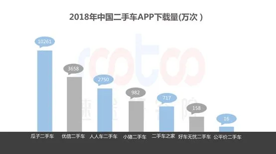 根据2018年中国二手车APP下载量数据显示,市场上主要的二手车电商平台的APP下载量包揽前三。瓜子二手车以超过1亿次的下载量遥遥领先,优信二手车以3658万次的下载量位居第二,人人车二手车则以2750万次的下载量位列第三,而排名第四及其后的二手车APP下载量均未超过千万次。