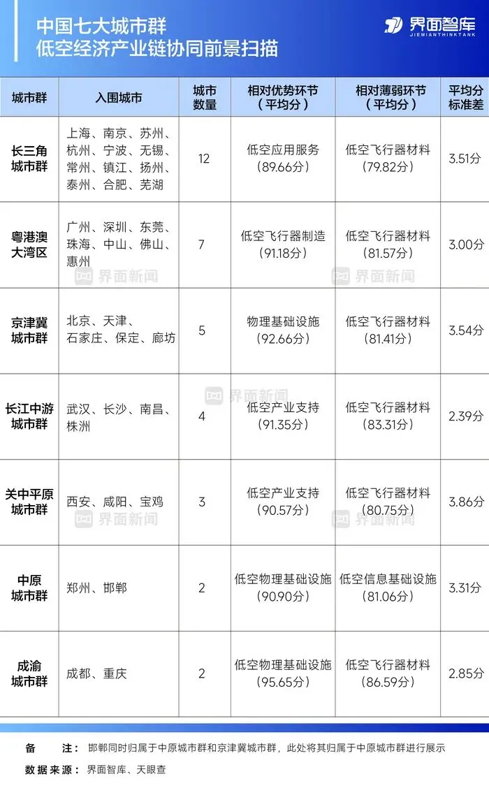七大城市群低空经济产业链断层扫描结果展示出差异化发展的协同图景。