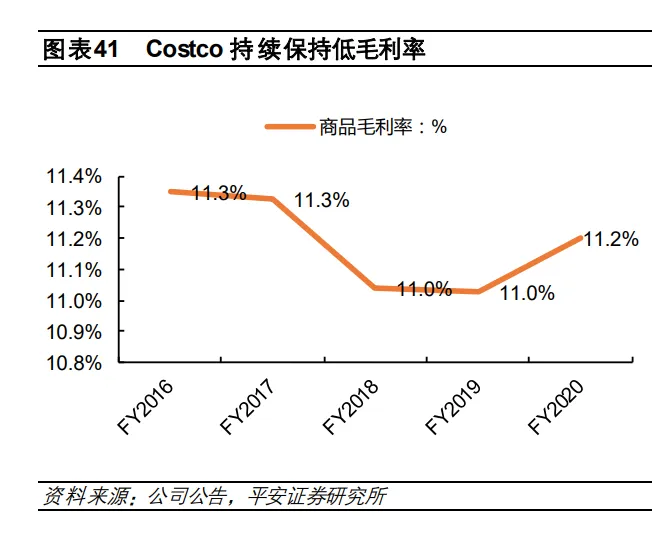 通过提升效率达成的“省”,更具持续性。以 Costco、亚马逊自营为代表的通过商品端规模效应、社区团购通过革新物流 配送模式等提升商品流通效率而形成的“省”更具持续性。以 Costco 为例,通过选品能力,将 SKU 控制在 4000 左右,提升单个 SKU向商家的议价能力,进而降低成本。与此同时,Costco毛利率常年维持较低水平,表明 Costco将规模效应 下降低的成本“回馈”给了消费者。最终形成通过极具竞争力的商品吸引消费者,再通过其他途径获得利润的商业模式, 比如 Costco通过会员费获得利润、亚马逊通过第三方商家佣金和广告费获得利润。FY2016-2020 Costco始终维持 11%左右较低毛利率,而会员收入占经营利润比例高达 70%左右,表明利润主要由会员收入而非商品销售贡献。