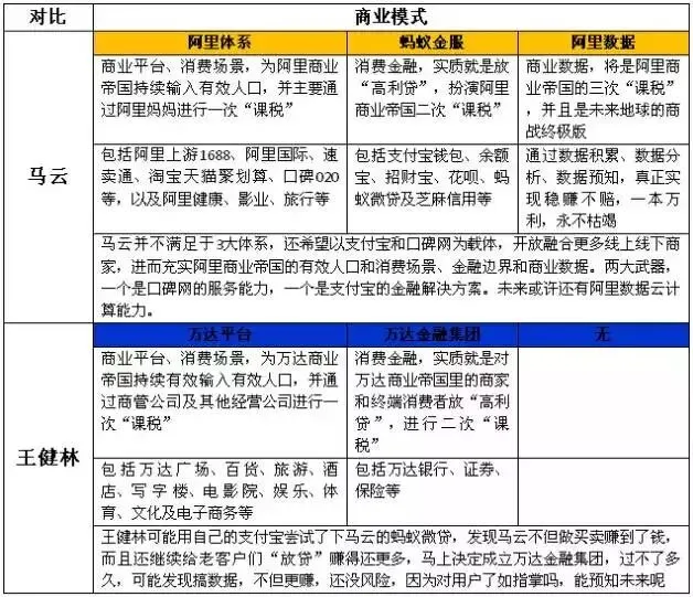表1:马云与王健林商业模式对比