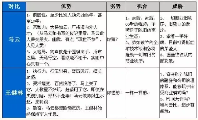表2:马云与王健林战斗值对比