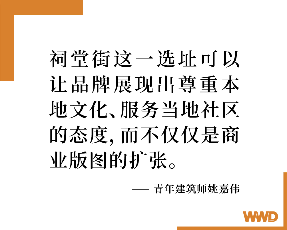 以现存的历史建筑或街区为基础的门店选址,其本身的空间设计与历史文化都会为品牌的在地化零售叙事产生影响。地处拥有广博地域文化的中国,这样的“地利”显然并非上海与成都特供;对于更多时尚奢侈品牌聚焦于中国文化叙事的零售扩张而言,祠堂街也打开了更多扇大门。
